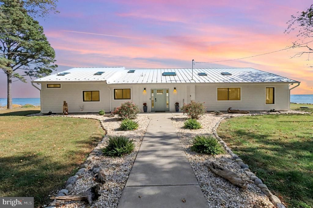 NEW PRICE!!! Experience Unmatched Premier Waterfront living with Sweeping Chesapeake Bay Views and Your very own Private Sandy Beach, this exceptional 4-bedroom, 3-bath coastal retreat offers a rare blend of serenity, natural beauty, and adventure. From the moment you arrive, endless water views and the soothing rhythm of gentle waves create an atmosphere of complete peace. Bald eagles soar overhead, dolphins playing, otters, turtles, herons and a plethora of wildlife to watch as nature truly surrounds you here. Step through the front entry where natural light fills the space and take in the panoramic water views that define nearly every room. The open-concept main living area features luxury vinyl wide plank flooring, skylights, recessed lighting, and an airy layout perfect for both relaxing and entertaining. The spacious family room flows seamlessly to the large waterside patio, where you can enjoy unobstructed views of the Chesapeake Bay and watch as the Smith Point Lighthouse begins to send beacons of light at dusk. End your evenings by the firepit under a canopy of stars, listening to the gentle waves lapping on the rocks. The kitchen & dining area is tastefully designed with simplicity & functionality in mind, boasting quartz countertops, a large island for all your hosting needs and meal prep, stainless steel appliances, recessed lighting & modern fixtures amplify the space, white shaker wood cabinetry with soft close doors & dovetail drawers. Ample storage in the built in pantries & a large walk in pantry and/or storage room just around the corner. Just off the kitchen, two inviting bedrooms feature luxury vinyl wide plank flooring, ceiling fans, and windows framing views of the private beach & Bay. A full bath with custom tile flooring and a shower/tub combo completes this wing. As you leave the dining area you are greeted once again with stunning Bay views from the flex room that can be a reading/sitting area, game room, study or whatever you want the space to be. The flex space connects to another flex room which leads you out to a second patio, perfect for outdoor dining. Back inside off the family room, conveniently located is a large full bath boasting custom tiled floors and shower, spacious laundry area and stylish finishes. A third bedroom, filled with natural light from a skylight, continues the home’s thoughtful design with recessed lighting and luxury vinyl wide plank flooring. Next up, the luxurious primary suite which is a true retreat. Wake each morning to the sun rising from the east illuminating the Chesapeake Bay right outside the wall of windows. The ensuite boasts a large walk-in tiled shower, double bowl vanity outlined by board and batten trim, a private linen closet, and a spacious walk-in closet with custom shelving. Step out onto your private patio to enjoy morning coffee, fresh air and unwind at night as ships pass by illuminating their path. Beyond the driveway lies the property’s tidal pond, a peaceful haven for herons, otters, and a beloved family of alligator snapping turtles who make a seasonal visit to enjoy the ripened persimmons. Just past the pond, your private beach awaits—ideal for kayaking, paddle boarding, fishing, sailing, or simply soaking in the sun and vitamin sea!!! This is your opportunity to own one of the most amazing properties on the Northern Neck!!!