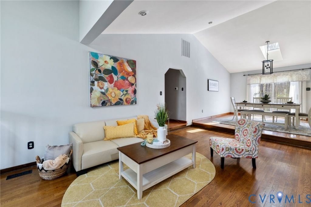 Fabulous, open home with incredible flow - this contemporary ranch is full of light and just feels good the moment you walk in. The layout is easy and connected, with a spacious family room featuring a raised hearth stone fireplace and wet bar, opening right into the living and dining spaces. Vaulted ceilings and skylights (including in the dining room and sunroom) bring in beautiful natural light throughout. The home offers four bedrooms, including a standout primary suite with a beautifully updated, oversized en-suite bath and a truly generous walk-in closet. The kitchen was fully updated in 2023 and blends style and function in all the right ways. Out back, the oversized deck overlooks a private yard - perfect for entertaining, relaxing, or both. There's also a detached shed with electricity, plus an attached one-car garage for everyday convenience. Tucked into a quiet neighborhood with the ability to walk to Steward School, this location offers that rare mix of peaceful and connected. Major updates have already been taken care of for you: new front door (2025), HVAC (2024), water heater (2024), encapsulated crawlspace (2023), kitchen renovation (2023), roof (2019), and windows (2019).