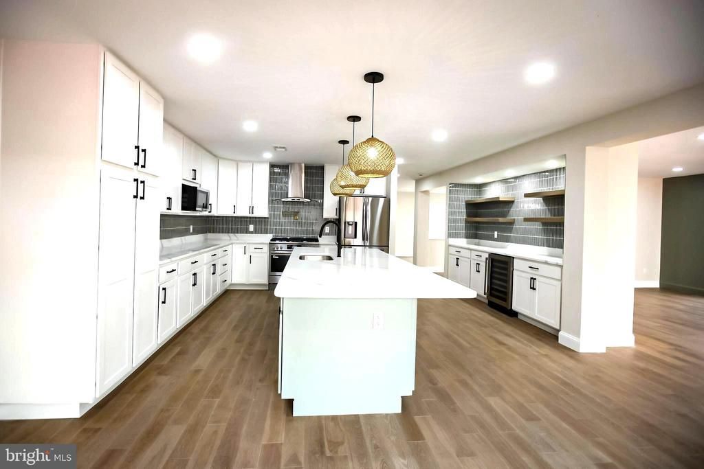 Welcome to 20818 Blossom Landing Way in Sterling, Fully remodeled custom home that blends modern elegance with everyday comfort. This beautifully updated 3-bedroom, 4.5-bath home features a show-stopping open-concept layout centered around a designer chef’s kitchen. The oversized 10-foot island anchors the space, complemented by sleek quartz countertops, brand-new cabinetry, stainless steel appliances, a statement range hood, and stylish vertical tile backsplash. Modern pendant lighting and a built-in beverage/wine station add both function and sophistication—perfect for entertaining. The main level boasts wide-plank hardwood flooring, recessed lighting, and custom acoustic accent walls with floating shelves, creating a warm yet contemporary feel. Natural light pours in through large sliding glass doors that lead to the outdoor deck, seamlessly connecting indoor and outdoor living. Upstairs, every bedroom offers its own private en-suite bath, all fully renovated with modern tilework, new vanities, and upscale fixtures. The spacious primary suite is a true retreat, featuring a cozy reading nook and a generous walk-in closet. The fully finished basement adds even more versatile living space, including a bonus room with a wet bar—ideal for hosting, relaxing, or creating your own private escape. Every detail in this home has been thoughtfully designed with high-end finishes throughout. Join us for the Open House this Sunday from 12:00 to 2:30 PM—this is one you don’t want to miss!